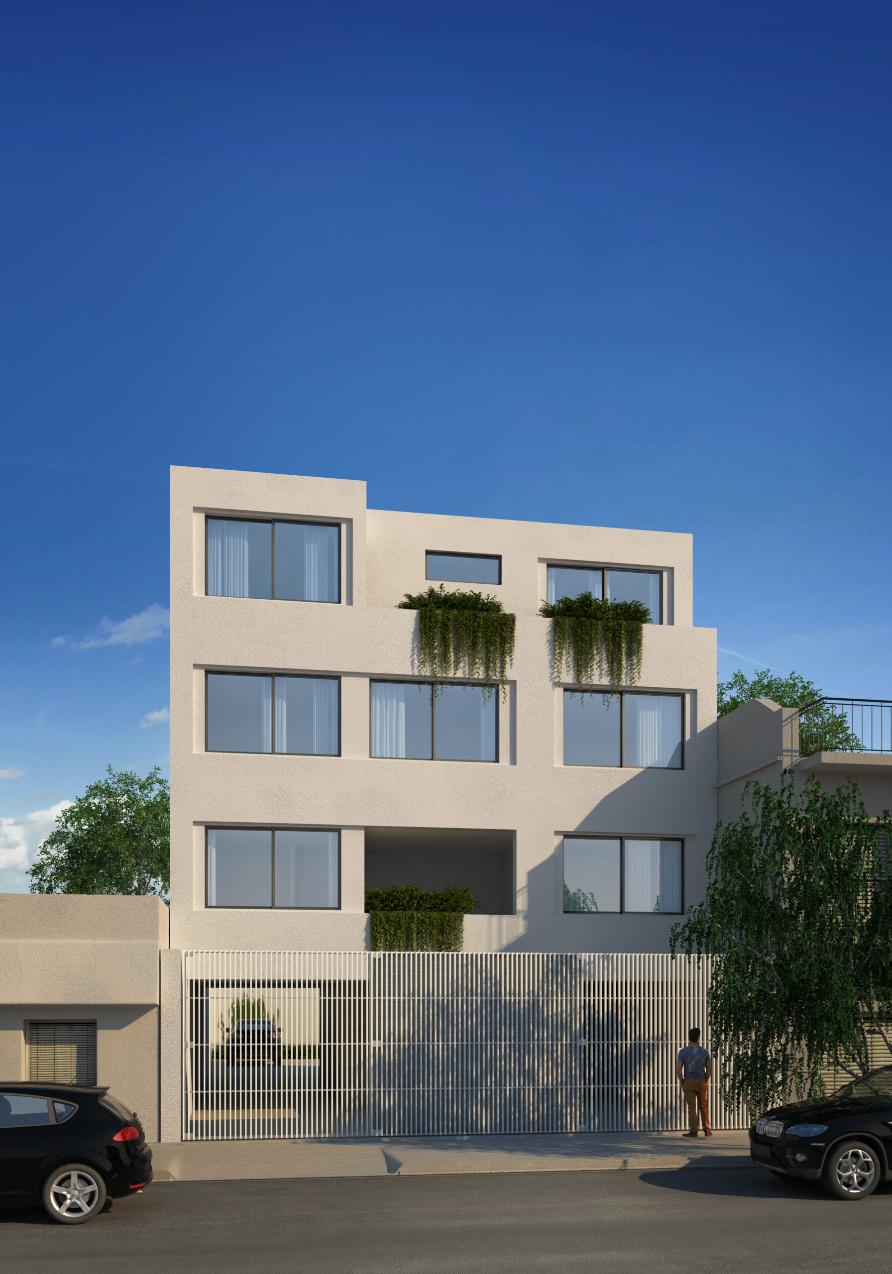 Al mismo tiempo y siendo hoy una necesidad de gran importancia, se consiguen 6 lugares destinados a cocheras, 2 de estas cubiertas. Todo esto logra conjugarse en un edificio que reconoce las virtudes del emplazamiento mediante una arquitectura simple que utiliza recursos acorde a la escala del emprendimiento.